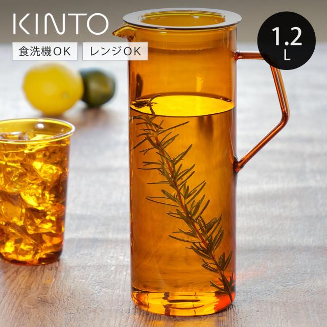 KINTO キントー CAST AMBER ジャグ 1.2L ( 耐熱ガラス 食洗機対応 電子レンジ対応 ピッチャー 水差し 水入れ ガラス製 食器 熱湯 耐熱 取っ手付き パッキン付き 広口 レトロ アンティーク調 おしゃれ お茶 水 )