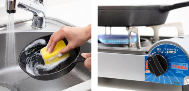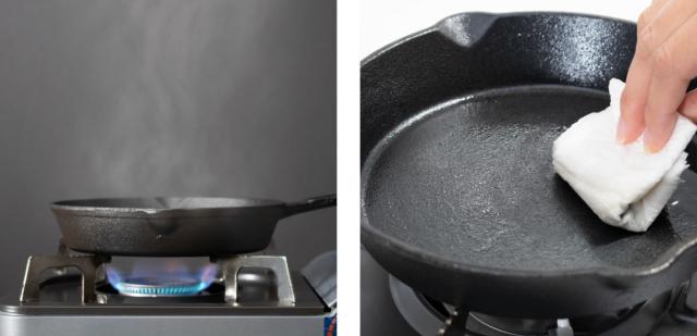 ※IH(電磁調理器)ではシーズニングの作業はできません。ガスコンロやカセットコンロで行ってください。