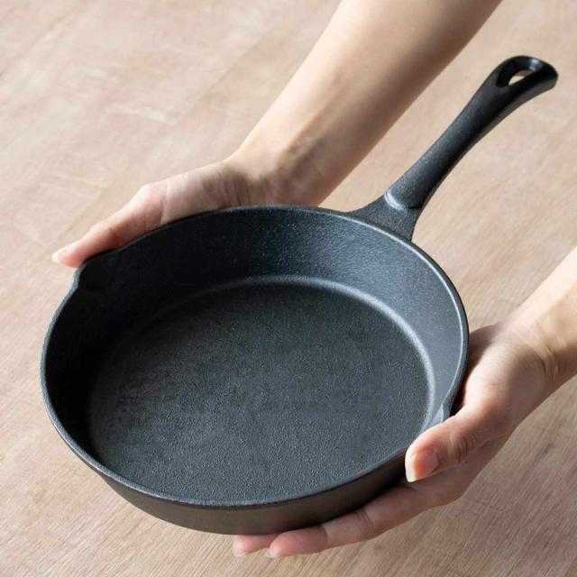 鉄鋳物製のスキレットです。食材への火あたりが柔らかく、じっくりと均等にムラなく火を通して旨みを引き出します。保温性も高く、ハンバーグやステーキ、アヒージョなどのグリル料理も出来立てアツアツのまま楽しめます。フレンチトーストやダッチベイビーなどの人気のカフェ風スイーツもおうちで手軽に楽しめます。