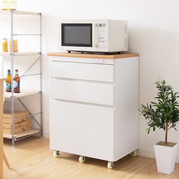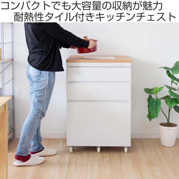 キッチンチェスト 幅60.2cm 3段 カントリー調 タイルトップ ( キッチンラック キッチンボード キッチン収納 耐熱 キッチンカウンター コンパクト 家電収納 レンジラック 台所収納 ホワイト ナチュラル コンセント付き )
