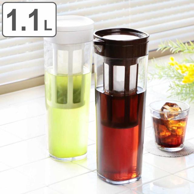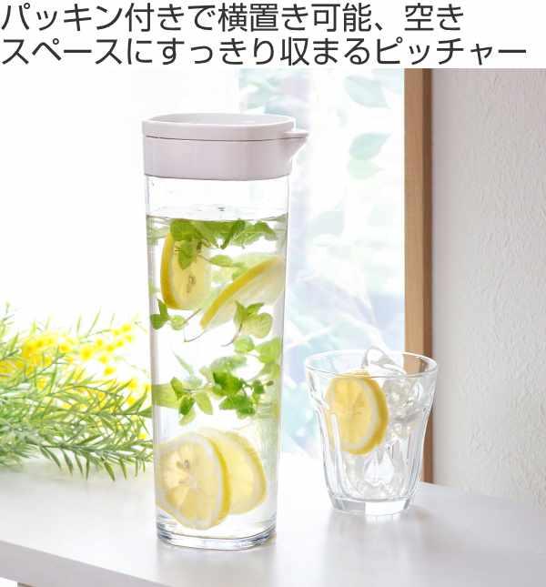 ピッチャー 1.1L 茶こし付き ドリンクビオ 横置き プラスチック ( 冷水筒 麦茶ポット 水差し パッキン付き 完全密閉 縦 横 コンパクト 茶こし 転がりにくい 広口 スクリュー式 目盛り )