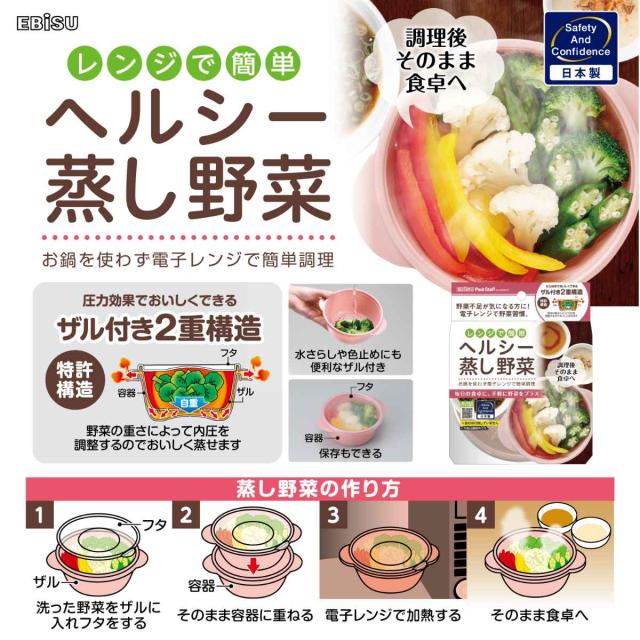 ●電子レンジで手軽に蒸し野菜が作れるレンジ調理容器です。