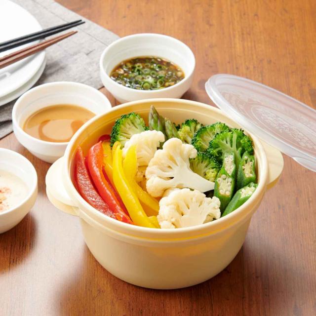 毎日の食卓に手軽に野菜をプラスできるレンジ調理容器