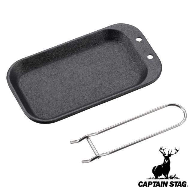 調理プレート Sサイズ コンパクト キャプテンスタッグ ( CAPTAIN STAG 鉄板 鋳鉄 プレート 鉄板プレート アウトドア 直火 オーブン 対応 グリルプレート バーベキュー ミニ グリル キャンプ 調理 角型 ハンドル付き )
