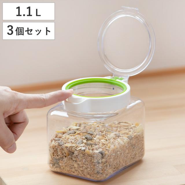 保存容器 密閉 1.1L キーポット 角型 3個セット ( ワンプッシュ KEEPOT ラストロウェア 食洗機対応 冷蔵庫対応 保存 容器 調味料容器 調味料入れ キャニスター ストッカー プラスチック 食洗機OK ワンタッチ 日本製 )