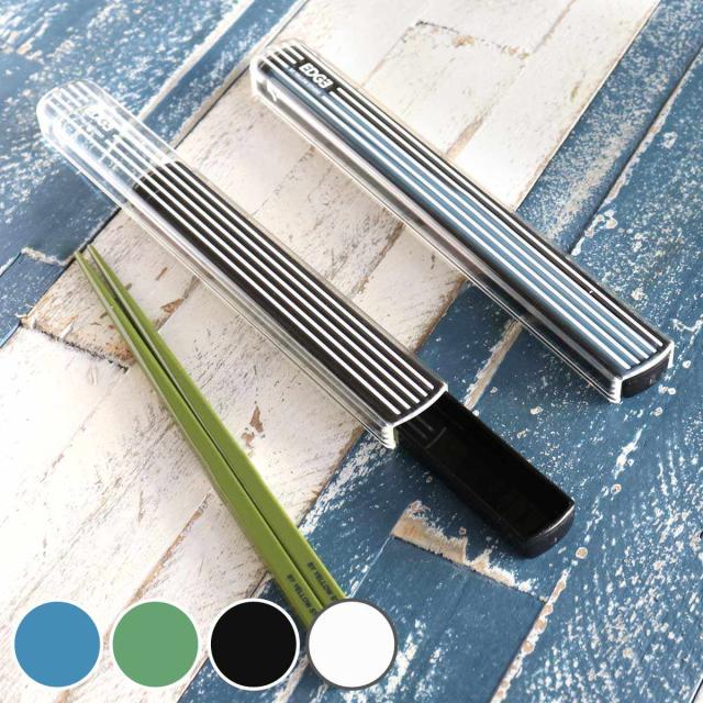 箸箱セット 箸 19.5cm EDGE ( お箸 箸箱 19.5センチ スライド式 カトラリー 男子 お弁当用 給食 お弁当 弁当 ストライプ柄 男性 大人 日本製 )