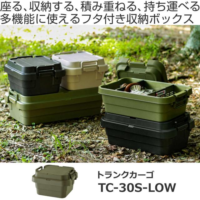 収納ボックス トランクカーゴ LOW TC-30S 18L 幅40×奥行39×高さ24cm ( 座れる 屋外 スタッキング 収納 ボックス ケース 頑丈箱 フタ付き コンテナ 工具箱 プラスチック アウトドア 持ち手付き 日本製 おしゃれ 車載 )