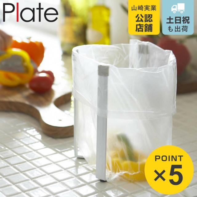 山崎実業 Plate ポリ袋ホルダー プレート ( ボトルスタンド コップスタンド グラススタンド キッチン収納 マスクケース 三角コーナー 卓上スタンド 水切り スタンド 折りたたみ ポリ袋 生ごみ キッチン 台所 おしゃれ )