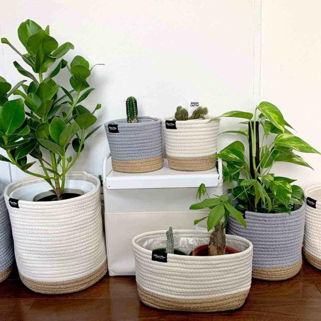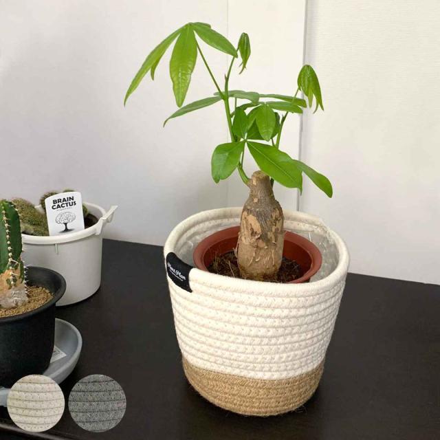 プランターカバー M ロープ ( 鉢カバー プランター ポットカバー 布 綿 麻 円形 筒型 5号鉢 6号鉢 生地 観葉植物 鉢植え 花 室内 収納 小物入れ おしゃれ 内側 ビニール )
