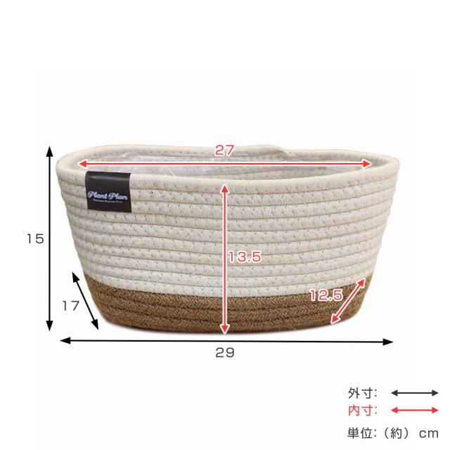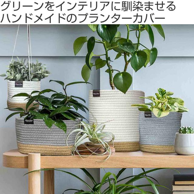 プランターカバー スクエア ロープ ( 鉢カバー プランター ポットカバー 吊り下げ ハンギングバスケット 布 綿 麻 3号鉢 4号鉢 生地 観葉植物 鉢植え 花 室内 収納 小物入れ おしゃれ 内側 ビニール )