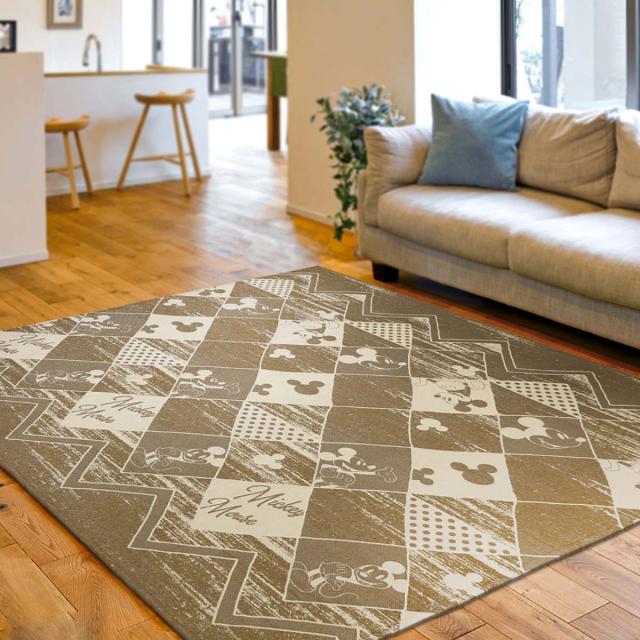 クラシックテイストで描かれたミッキーの表情がとても愛らしく、癒されます。グランジテイストでありながら、やさしい色味のラグはリラックスタイムにピッタリです。
