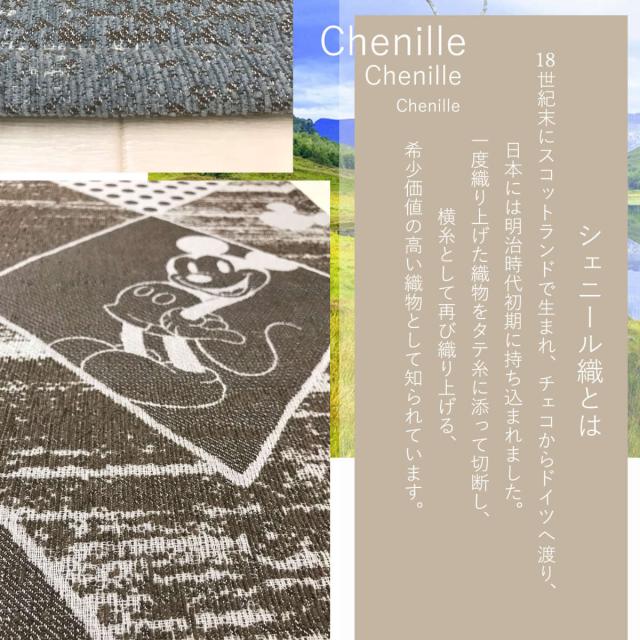 伝統的なシェニール織のテイストが楽しめるラグです。キャラクターのラグはポップな雰囲気になりがちですが、こちらのラグは落ち着いたカラーなので大人の方にもおすすめです。