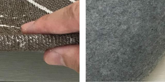 | 厚み 約5mmのウレタンフォームで程よい厚みがあります。 | 裏面 床が傷つきにくいよう裏面には不織布が貼られています。 |