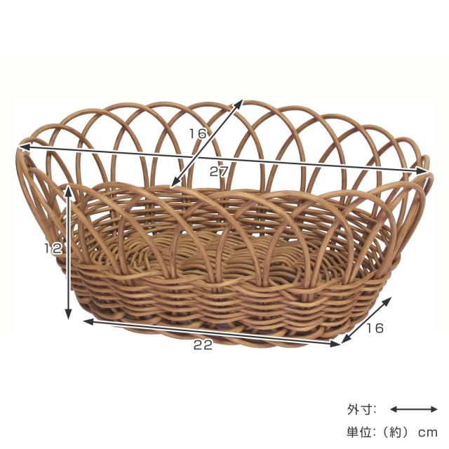 Towc トーク フェイクラタンバスケット フルーツカゴ Lサイズ ( バスケット かご カゴ ラタン風 水洗い 幅27×奥行16×高さ12cm 収納 オーバル 小物収納 小物入れ 丸型 籐かご風 おしゃれ ラウンド 楕円 キッチン リビング )