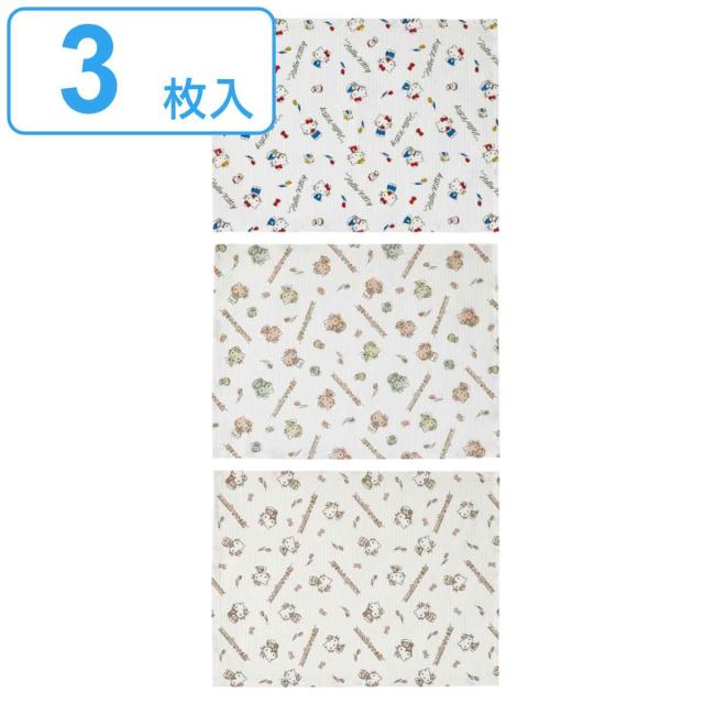 ふきん 綿100% ワッフル生地ふきん 3枚入 ハローキティ ( キティ 布巾 フキン ワッフル 生地 コットン 食器拭き 台拭き キッチンタオル ワッフルクロス 吸水性 シンク周り キッチン雑貨 キッチングッズ )