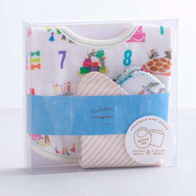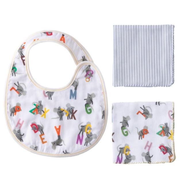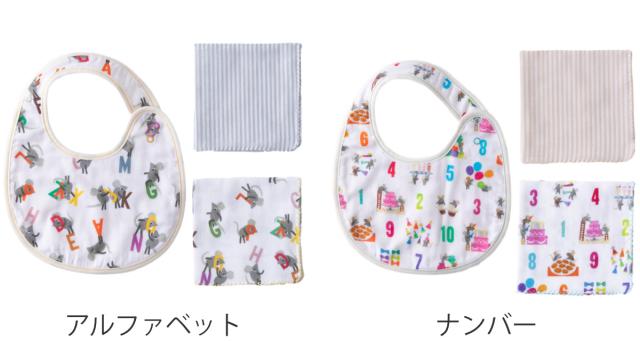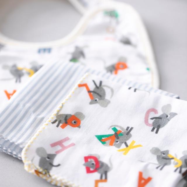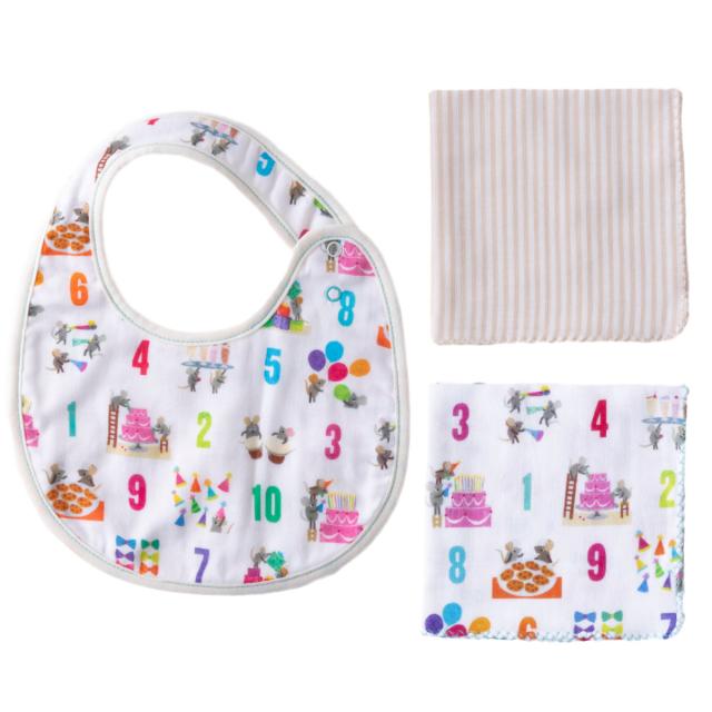 スタイ1枚とガーゼハンカチ2枚がそれぞれ入っています。