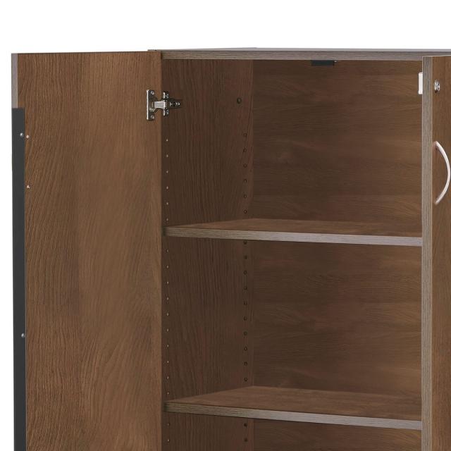 全面扉付きでたくさん収納しても中が見えないためすっきり見えるシェルフです。ウォールナット調のシックなデザインは、温もりのある落ち着いた空間を演出してくれます。アジャスター付き、横連結可能です。