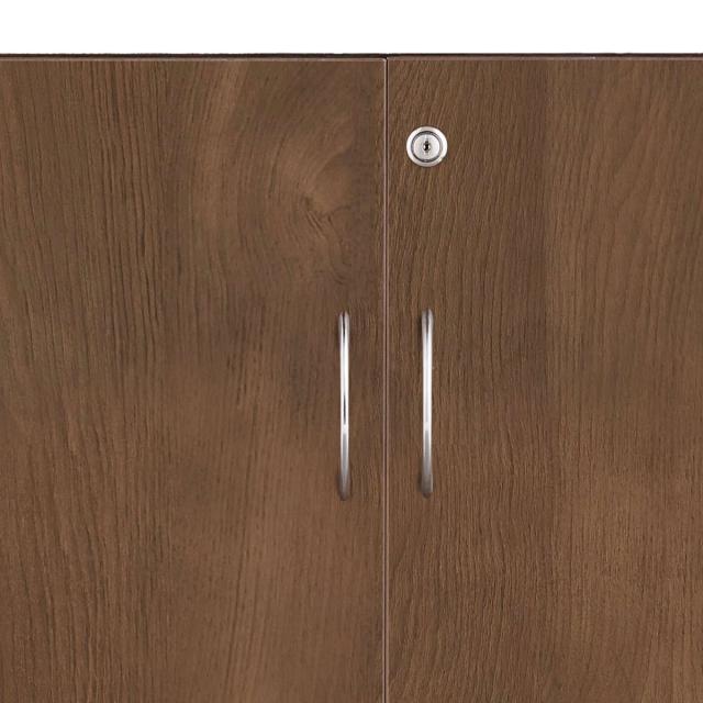 ローシェルフ 本棚 3段 鍵付 全面扉 ウォールナット調 幅82cm ( 法人限定 シェルフ 書棚 ラック 棚 書庫 収納家具 ファイル棚 カルテラック 鍵 カギ付き 扉付き A4対応 扉 ブラウン 背面化粧 収納 )