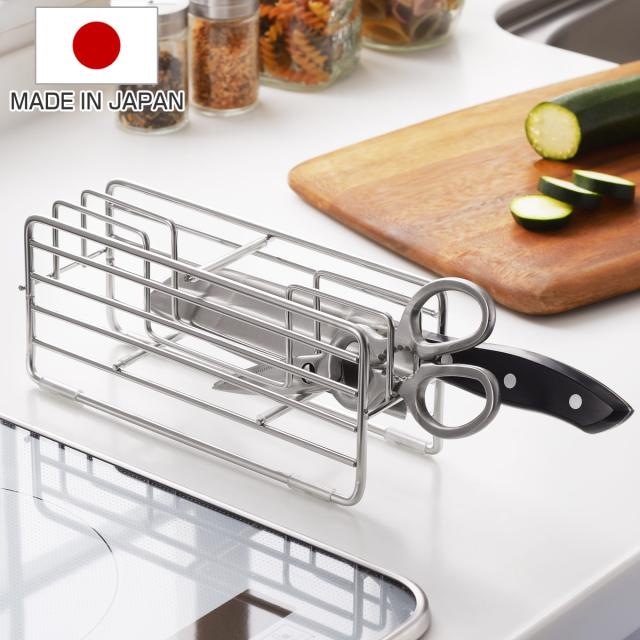 包丁スタンド 通気性のいい横置き包丁スタンド Hi! ( 日本製 ステンレス 食洗機対応 ハイ 包丁差し 包丁ホルダー 包丁立て ほうちょう立て 横置き 燕三条産 キッチンバサミ収納 包丁収納 ナイフスタンド )