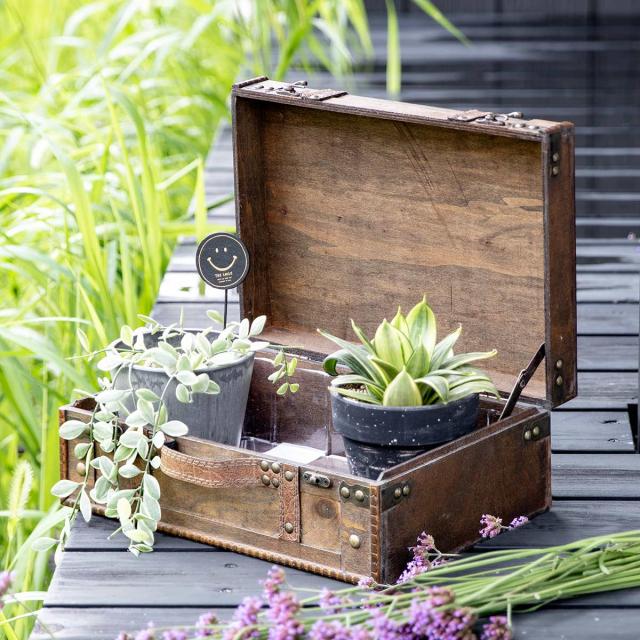 プランター トレジャーボックスポット L ブラウン ( 植木鉢 プラントポット 植物用ポット 鉢入れ ポット 宝箱 木 置く 植物 飾る 鉢カバー 花台 花 観葉植物 多肉植物 収納 園芸 インテリア おしゃれ )