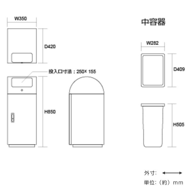 | サイズ | 約 幅35×奥行42×高さ85(cm) 投入口:約 横25×縦15.5(cm) 中容器:約 幅38.5×奥行27.8×高さ51.4(cm) |