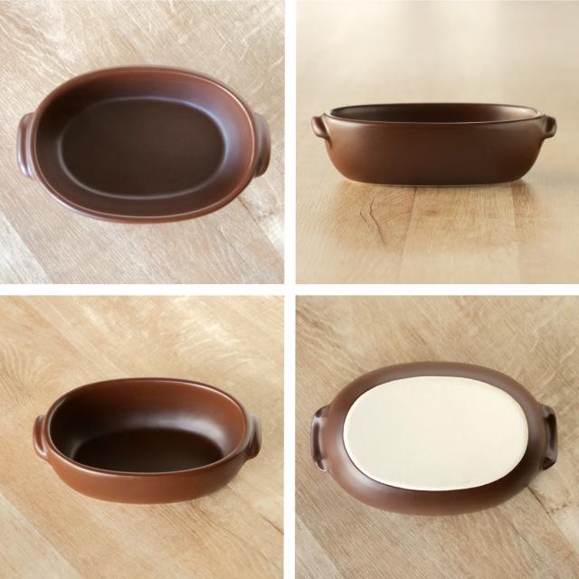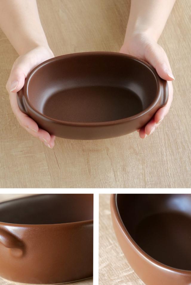 グラタン皿 一人用 18cm アースン 陶器 萬古焼 ( 食洗器対応 電子レンジ対応 オーブン対応 直火対応 オーブンウェア 耐熱皿 1人用 グラタン ラザニア 煮込み料理 アヒージョ シンプル 耳付き 直火 オーバル型 楕円 おしゃれ )
