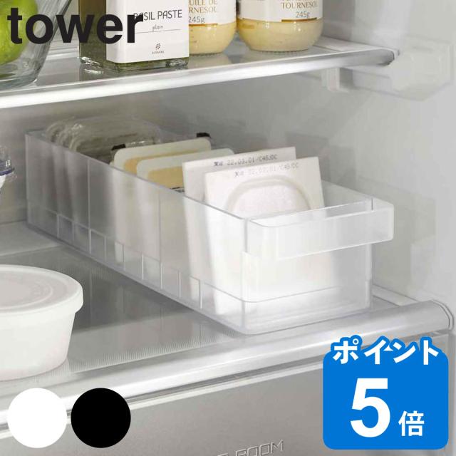 山崎実業 tower 冷蔵庫中収納ケース タワー 仕切り付 ( 4903208057622 タワーシリーズ 冷蔵庫収納 仕切り付き 冷蔵庫 収納ケース 収納トレー 冷蔵庫トレー 収納ラック 冷蔵室 収納 トレー トレイ ケース 整理 整頓 キッチン収納 )