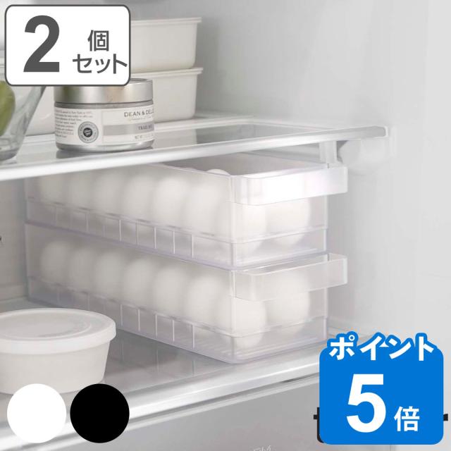 山崎実業 tower 冷蔵庫中卵ケース タワー 2個セット ( 4903208057646 タワーシリーズ 冷蔵庫 卵ケース 卵トレー 冷蔵庫トレー 冷蔵室 収納ケース 収納トレー 収納 トレー トレイ ケース ホワイト ブラック )