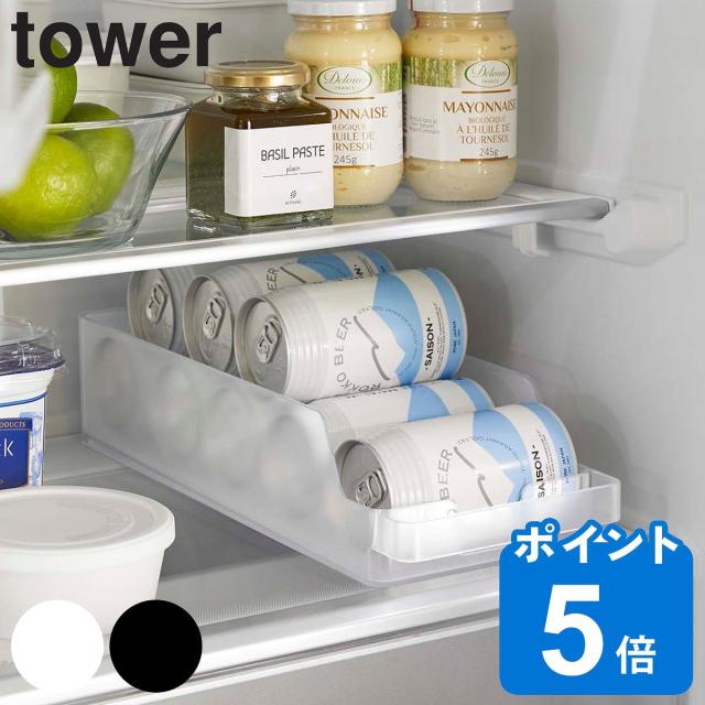 山崎実業 tower 冷蔵庫中缶ストッカー タワー ( 4903208057660 タワーシリーズ 冷蔵庫収納 冷蔵庫 収納ケース 収納トレー 冷蔵庫トレー 収納ラック 缶ストッカー 缶ビール 缶ジュース 350ml 500ml 冷蔵室 収納 トレー トレイ )
