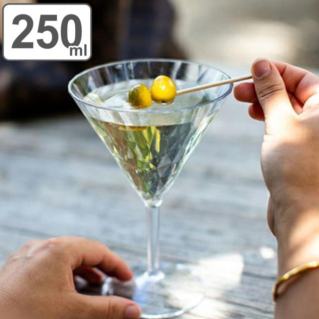 まるで本物のガラスのようなプラスチック製のカクテルグラスです。カッティングデザインを全体にあしらったデザインで、注いだドリンクをキラキラと美味しそうに見せてくれます。見た目のデザイン性はもちろん、食洗機にも対応しているので使い勝手もバッチリです。