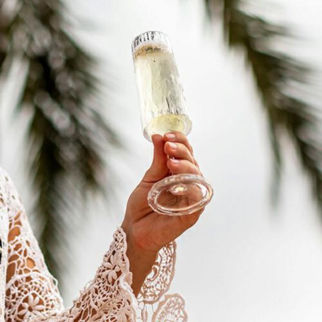 まるで本物のガラスのようなプラスチック製のシャンパングラスです。カッティングデザインを全体にあしらったデザインで、注いだドリンクをキラキラと美味しそうに見せてくれます。見た目のデザイン性はもちろん、食洗機にも対応しているので使い勝手もバッチリです。