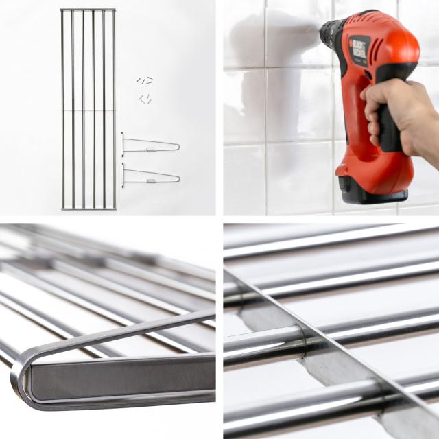 空いているスペースに設置できる「ネジ止めタイプの水切り棚」です。汚れやサビに強く耐久性に優れたステンレス製のパイプ棚で、縦の空間を上手に使えます。シンク上に設置すれば、スノコ状の棚が風通しがよく、洗い物を早く乾かすことができます。調理台上の空間に設置すれば、グラスや鍋・フライパン、調味料などの収納スペースとしてもお使いいただけます。