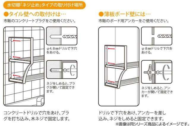 | 注意事項 | ※土壁・しっくい・石膏ボードなどの、こわれやすい壁への取り付けは避けてください。 ※商品ページ内には別の商品を含む画像を使用しています |