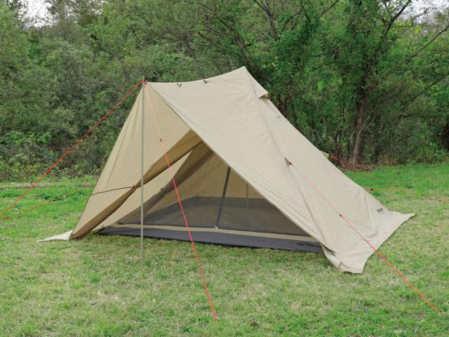 | 材質 | フライ:ポリエステルリップストップ210T(PU2000mm)UV加工、撥水加工 インナー:ウォール=ポリエステル185T(通気性撥水加工)、メッシュ=ポリエステルノーシームメッシュ、フロア=ポリエステルOXF150D(PU3000mm) ポール:アルミニウム合金(直径19mm) |