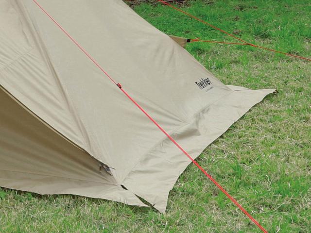 フライシートの裾には、風の吹き込みを抑えるスカートを装備しています。