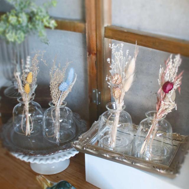 そのまま飾れるガラスベース付きドライフラワー