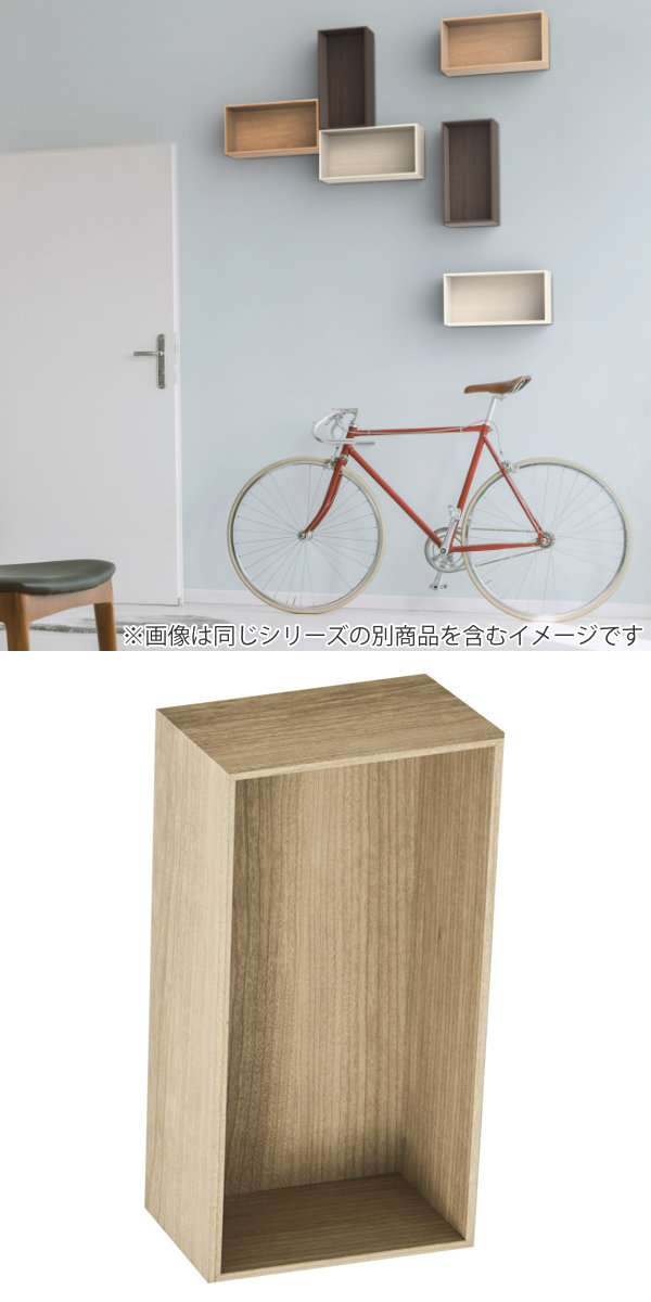暮らしに合わせて自由にレイアウトすることができる壁面収納ラックです。こちらは基本となるボックスユニットで、積み木のように組み替えたり、遊び心あふれる壁面収納を作ることができます。