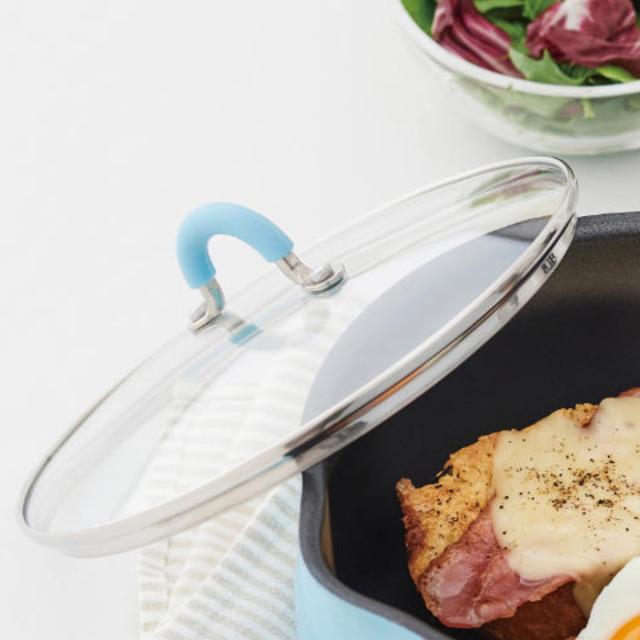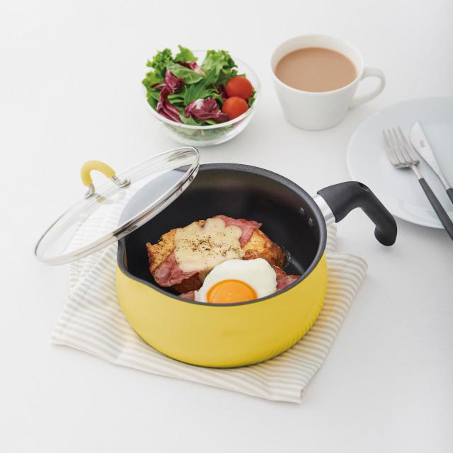 調理中の様子が見えるガラス蓋つきです。U字のツマミなのでサッと掴みやすいです。