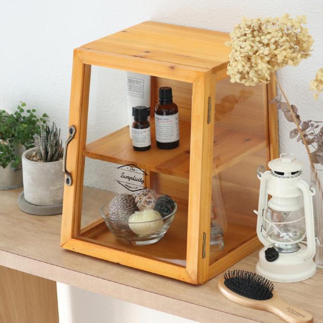 ミニショーケース ボワシー ガラスケース 木製 ( カウンター上収納 小物収納 調味料ラック スパイスラック ショーケース 卓上ラック ラック ケース キッチン収納 デスク収納 アンティーク カフェ風 北欧 おしゃれ 完成品 )