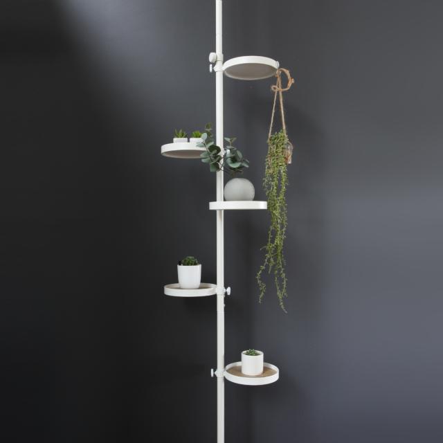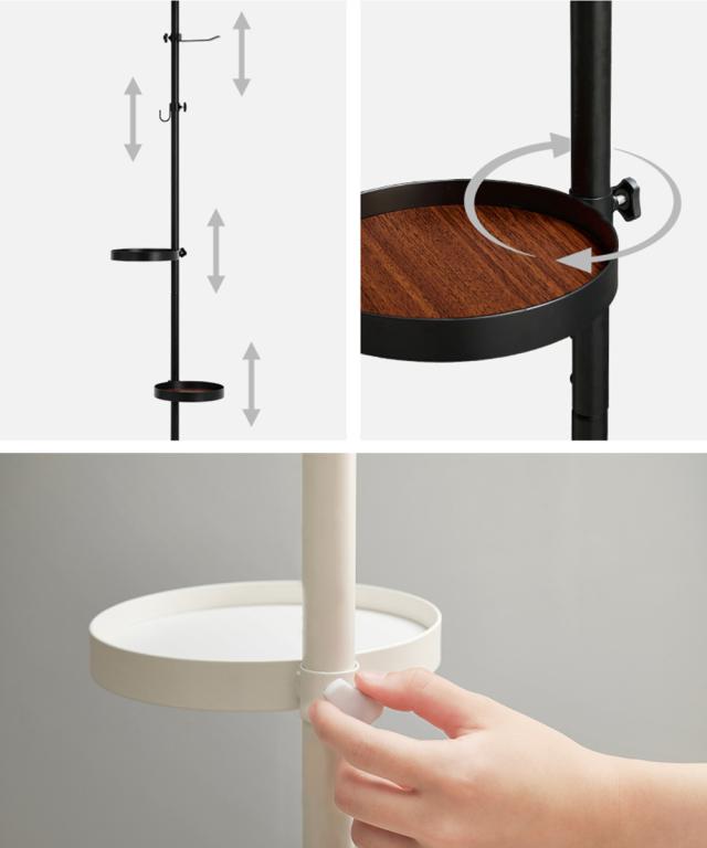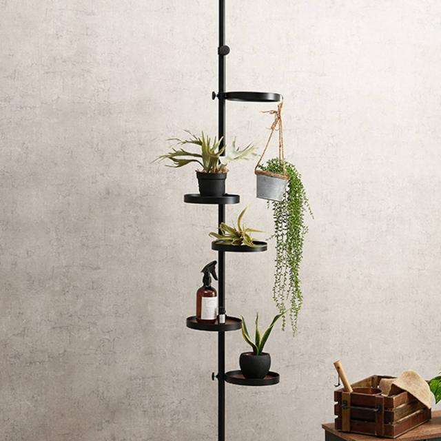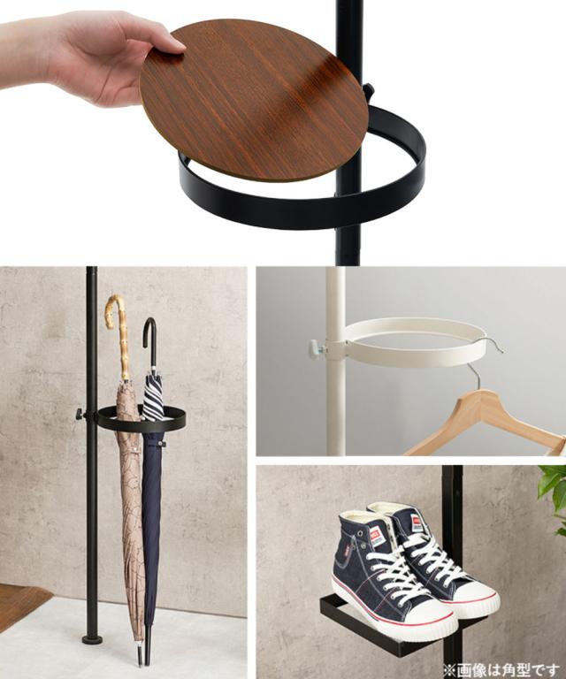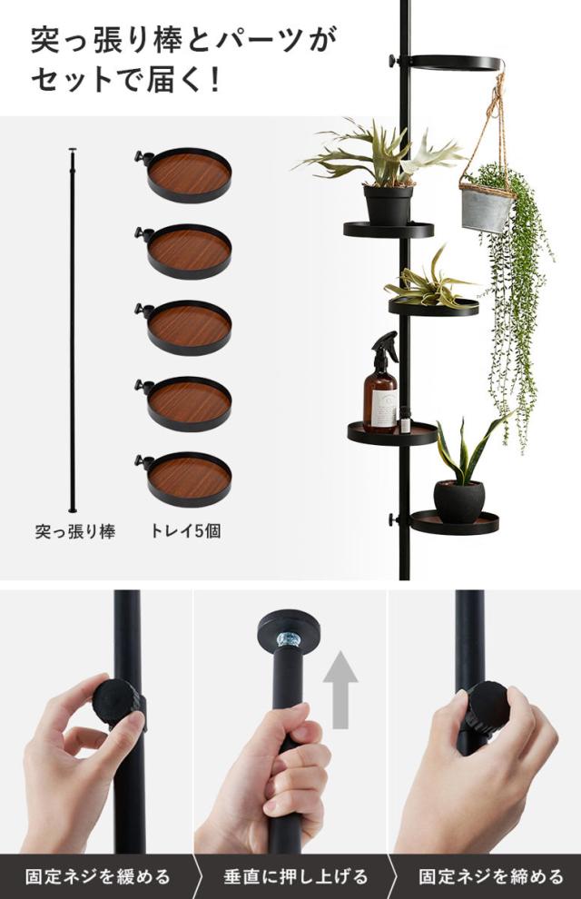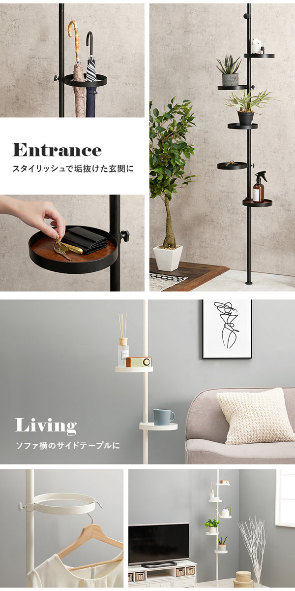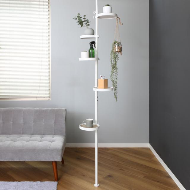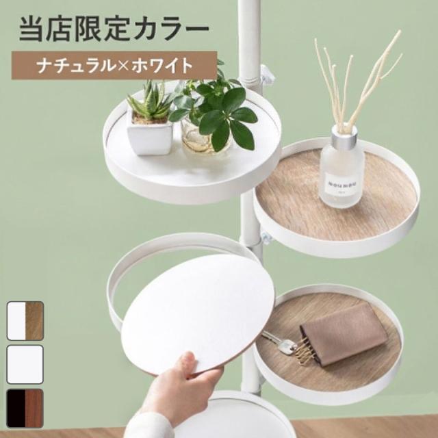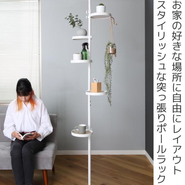 突っ張りポールラック 丸型トレイ5個 高さ調整 見せる収納 ( 突っ張りラック 突っ張り棒 ラック ハンガー ポール スリム 収納 突っ張り 隙間 つっぱり棚 スリムラック 収納ラック トレー 5段 観葉植物 リバーシブル 両面 )