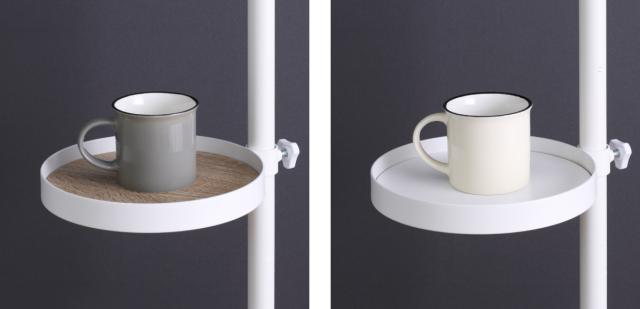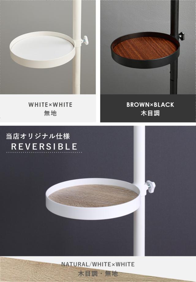 温かな木目調の棚板のナチュラルカラーが、ホワイトのポールによく映えるカラーリング。棚板の裏面はホワイトのリバーシブル仕様で、気分に合わせて使い分けができます。