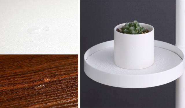 ホワイトとブラウンの棚板は、水や汚れに強いメラミンシート仕様。明るく清潔感があり、トイレやランドリーなどの水回りに設置するのもおすすめです。濡れてもサッと拭き取るだけなので、お手入れが簡単です。