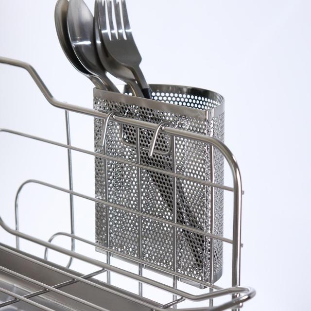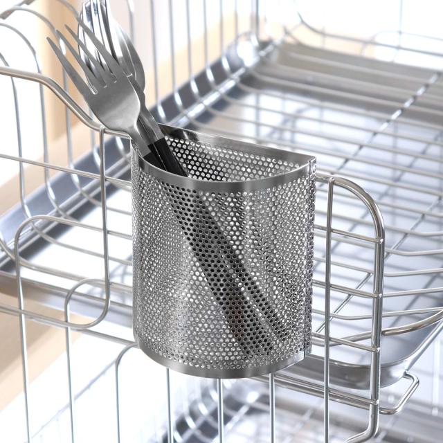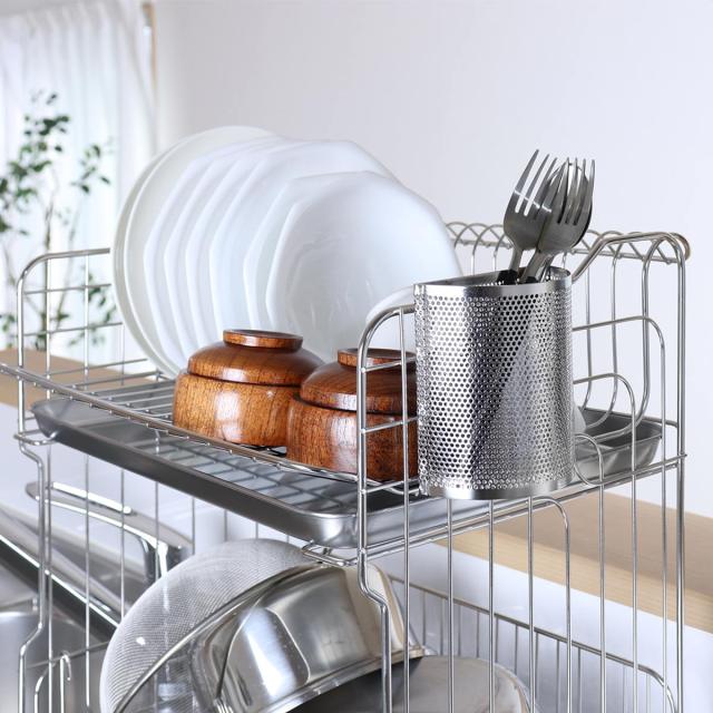 ご自宅の水切りかごに取り付けられる箸立てです。使用している水切りかごに引っ掛けるだけで、簡単に水切りスペースを増やすことができます。耐久性に優れたステンレス製で変形しにくく、長く愛用していただけます。また、サビにくい特長もあるので、お手入れもしやすく衛生的にお使いいただけます。