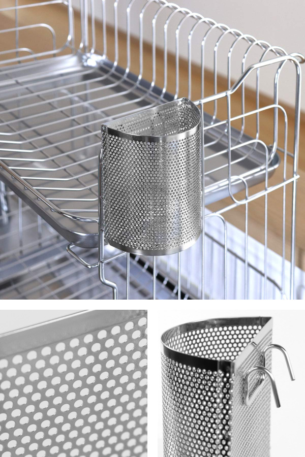 全面パンチング材を使用しているので、水はけが良く通気性が良いです。また、角は全て丸く面取りがされ、安全性と安定性、強度が充実した商品となっています。シンプルでステンレスならではの美しいデザインは、どんなインテリアにも馴染みやすく、清潔感ある空間にしてくれます。