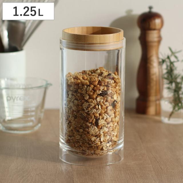 保存容器 1.25L 重なるキャニスター バンブー ( キャニスター 密閉 プラスチック 1250ml 竹 保存 容器 ケース スタッキング 積み重ね ストッカー 食品保存容器 スパイスボトル フードストッカー 食品保存 丸型 シリコーン弁付き )