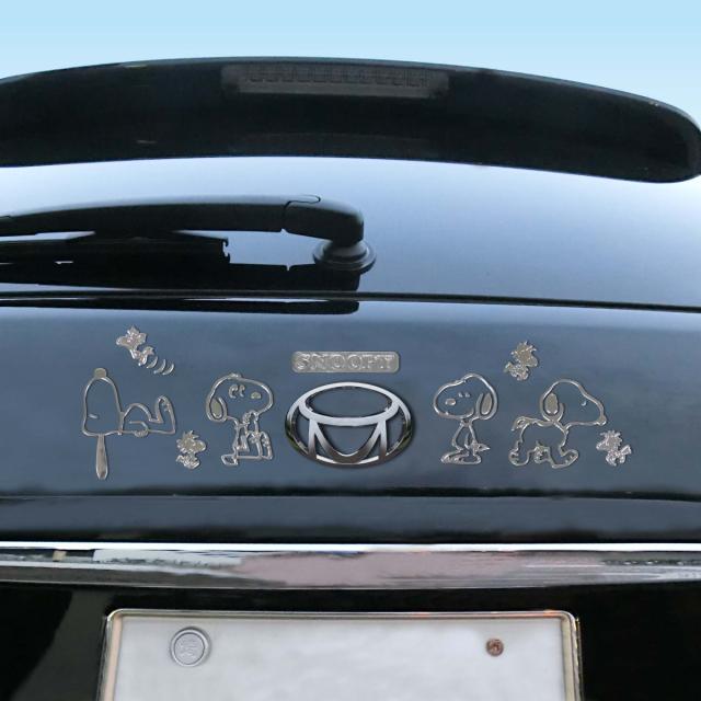 ステッカー エンブレムステッカー スヌーピー H ( キャラクター シール SNOOPY PEANUTS マーク かわいい カー用品 車可愛い デコレーション デコシール カー アクセサリー メタリック シルバー エンブレム )