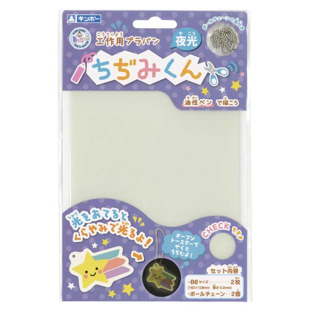 プラバン ちぢみくん B6 夜光 2枚入 ( プラ板 クリア 知育玩具 おもちゃ キット 工作 手作り キーホルダー ストラップ 光る 子供 キッズ 日本製 プラ版 知育 玩具 チェーン付き 自由研究 オリジナル 小学生 男の子 女の子 )