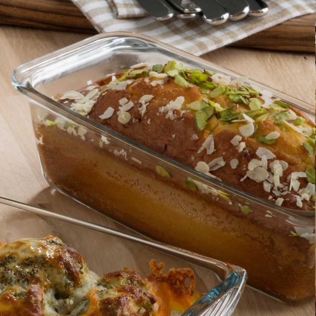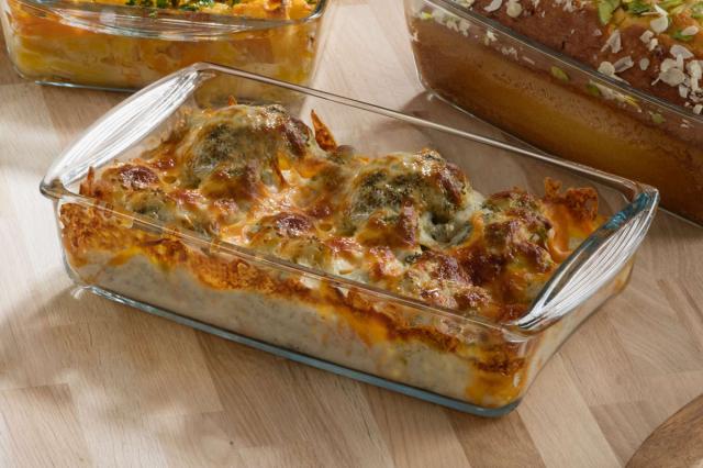 耐熱ガラスのグラタン皿です。調理や温めなおしが終わったら、できたてをすぐに食卓へサーブできます。透明で圧迫感がなく、食材の彩りがテーブルを華やかに演出します。断面がきれいな重ね蒸しやスコップケーキにもオススメです。