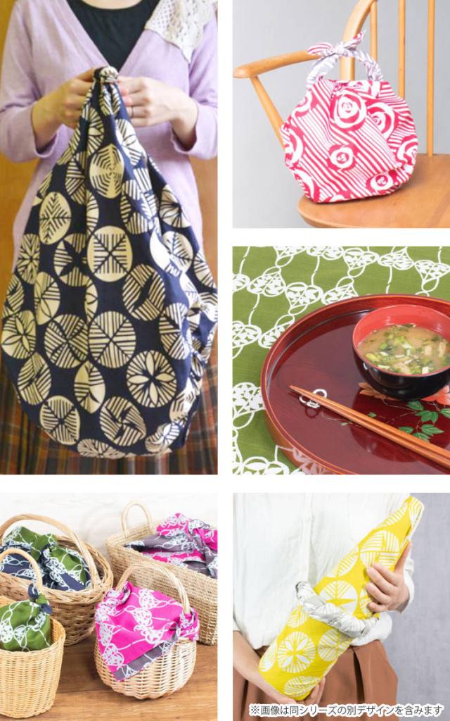 男女問わずお使いいただきやすく、日常の様々なシーンに自然と馴染みます。大きめのサイズなので、レジかごにセットする買い物バッグとして使ったり、一升瓶も包めます。タペストリーやテーブルクロス、目隠しとしてお部屋のアクセントにもお使いいただけます。