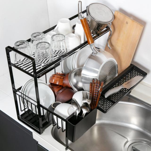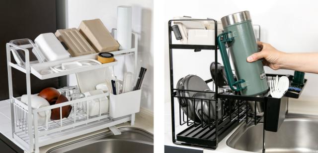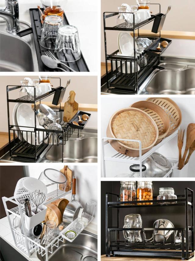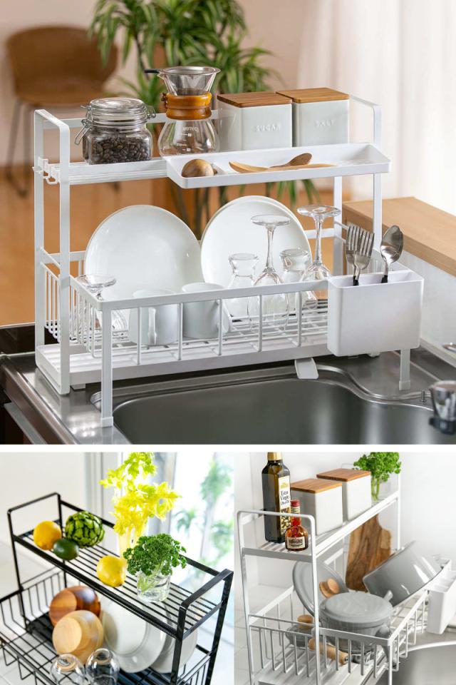 水切りとしてはもちろん、上段に調味料やキッチンハーブ、ティーセット等を置いてラックとして使うこともできます。生活スタイルに合わせて使いやすいよう使えるのがポイントです。